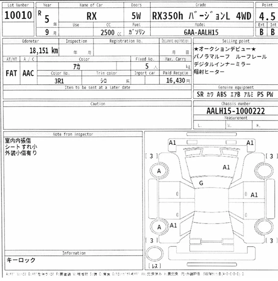 • 2500CC HYBRID 4WD • 3R1 MATADOR RED MICA WITH BEIGE INTERIOR • AUCTION GRADE 4.5 / 18151 KM ONLY • 21" WHEELS, PANORAMIC ROOF • POWERED/HEATED/VENTILATED FRONT AND REAR SEATS (FRONT SEAT MEMORY) • WIRELESS APPLE CARPLAY AND WIRED ANDROID AUTO, AMBIENT LIGHTING, HUD